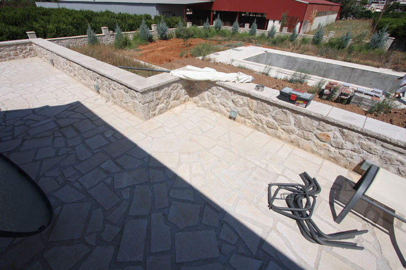 Η μονοκατοικία είναι 400 τ.μ. σε οικόπεδο 3 στρεμμάτων και πωλείται στην τιμή των 600.000€. Αποτελείται από ισόγειο 200 τ.μ. και υπόγειο 200 τ.μ. Όλο το ακίνητο είναι κλειστό περιμετρικά με μάντρα κατασκευής οπλισμένου σκυροδέματος. Η μονοκατοικία έχει λιτούς γεωμετρικούς όγκους (minimal) και οι εσωτερικοί χώροι είναι μοντέρνας αισθητικής. Η κουζίνα είναι ανεξάρτητη από τον υπόλοιπο χώρο και επικοινωνεί μέσω ανοίγματος με την τραπεζαρία. Υπάρχει ένα τζάκι το οποίο διαχωρίζει το σαλόνι από το καθιστικό, τα οποία διαθέτουν δρύινα πατώματα και έχουν θέα στον κήπο και την πισίνα. Επιπλέον, στον εξωτερικό χώρο υπάρχει διαμορφωμένος χώρος με μπάρμπεκιου, ιδανικός για στιγμές χαλάρωσης και φιλοξενίας. Η κατοικία αποτελείται από τρία υπνοδωμάτια: ένα master υπνοδωμάτιο με ensuite λουτρό με υδρομασάζ και βεστιάριο, ένα παιδικό υπνοδωμάτιο με επίσης ensuite λουτρό και βεστιάριο, και ένα ακόμη παιδικό υπνοδωμάτιο με δικό του λουτρό. Όλα τα υπνοδωμάτια διαθέτουν ψευδοροφές και κρυφό φωτισμό. Το υπόγειο περιλαμβάνει playroom, εγκαταστάσεις για βοηθητική κουζίνα, ξενώνα με βεστιάριο και λουτρό, WC, γυμναστήριο, γραφείο και χώρο στάθμευσης. Η πρόσβαση στο υπόγειο γίνεται μέσω εσωτερικής σκάλας από την κύρια κατοικία, αλλά υπάρχει και ανεξάρτητη είσοδος από τον κήπο. Το λεβητοστάσιο βρίσκεται σε ξεχωριστό χώρο από την κατοικία. Η κατοικία έχει κατασκευαστεί με θερμομονωτικά υλικά και διαθέτει θερμοδιακοπτόμενα κουφώματα για ενεργειακή απόδοση και άνεση.