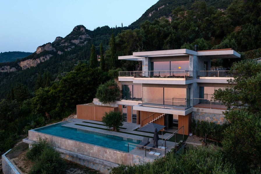 Πωλείται εντυπωσιακή βίλα χτισμένη αμφιθεατρικά με πισίνα και ανεπανάληπτη θέα Πεντάτι, Κέρκυρα