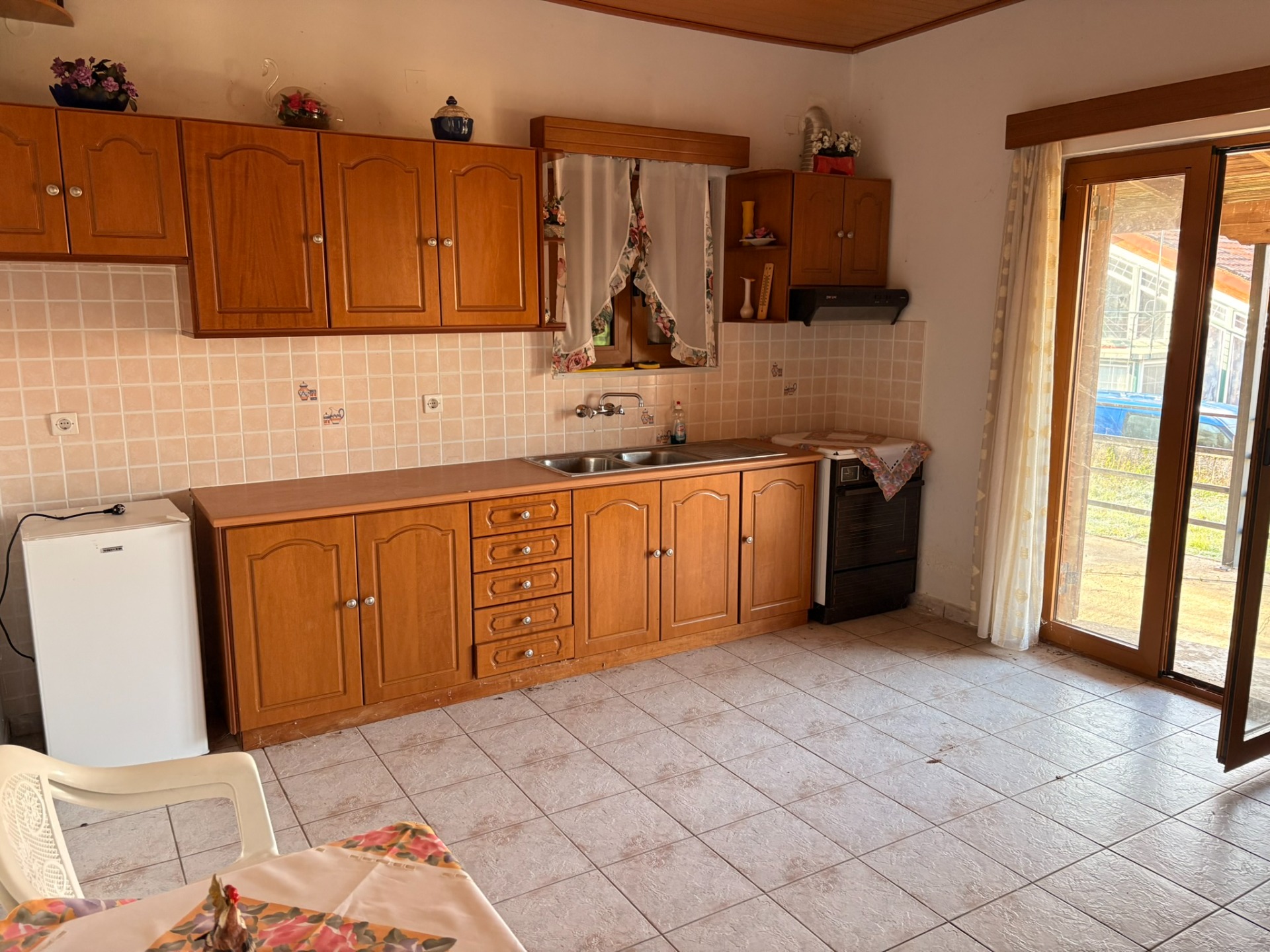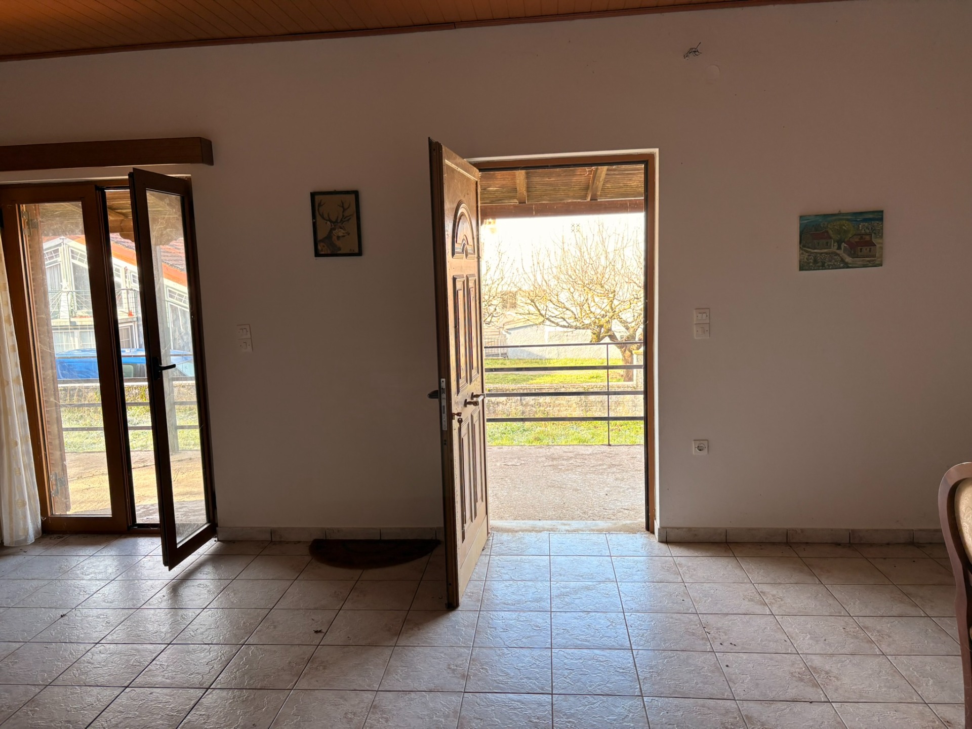 Το σπίτι αναπτύσσεται σε υπερυψωμένο ισόγειο επίπεδο και αποτελείται από δύο άνετα υπνοδωμάτια, ένα φωτεινό σαλόνι που λειτουργεί ως χώρος υποδοχής, μια λειτουργική κουζίνα και ένα πλήρες μπάνιο. Η κατασκευή του 1995 βρίσκεται σε μέτρια κατάσταση, διαθέτοντας πλακάκια και αλουμινένια κουφώματα με διπλά τζάμια. Η ενεργειακή κλάση Δ και η απουσία θέρμανσης αποτελούν ευκαιρία να εγκαταστήσετε σύγχρονη αντλία θερμότητας ή αυτόνομο λέβητα σύμφωνα με τις προτιμήσεις σας. Το ακίνητο είναι γωνιακό, προσόψεως, διαμπερές, ευάερο και ευήλιο, με κήπο, δέντρα και αποχέτευση. Χωρίς κοινόχρηστα έξοδα και επιτρέπονται κατοικίδια!