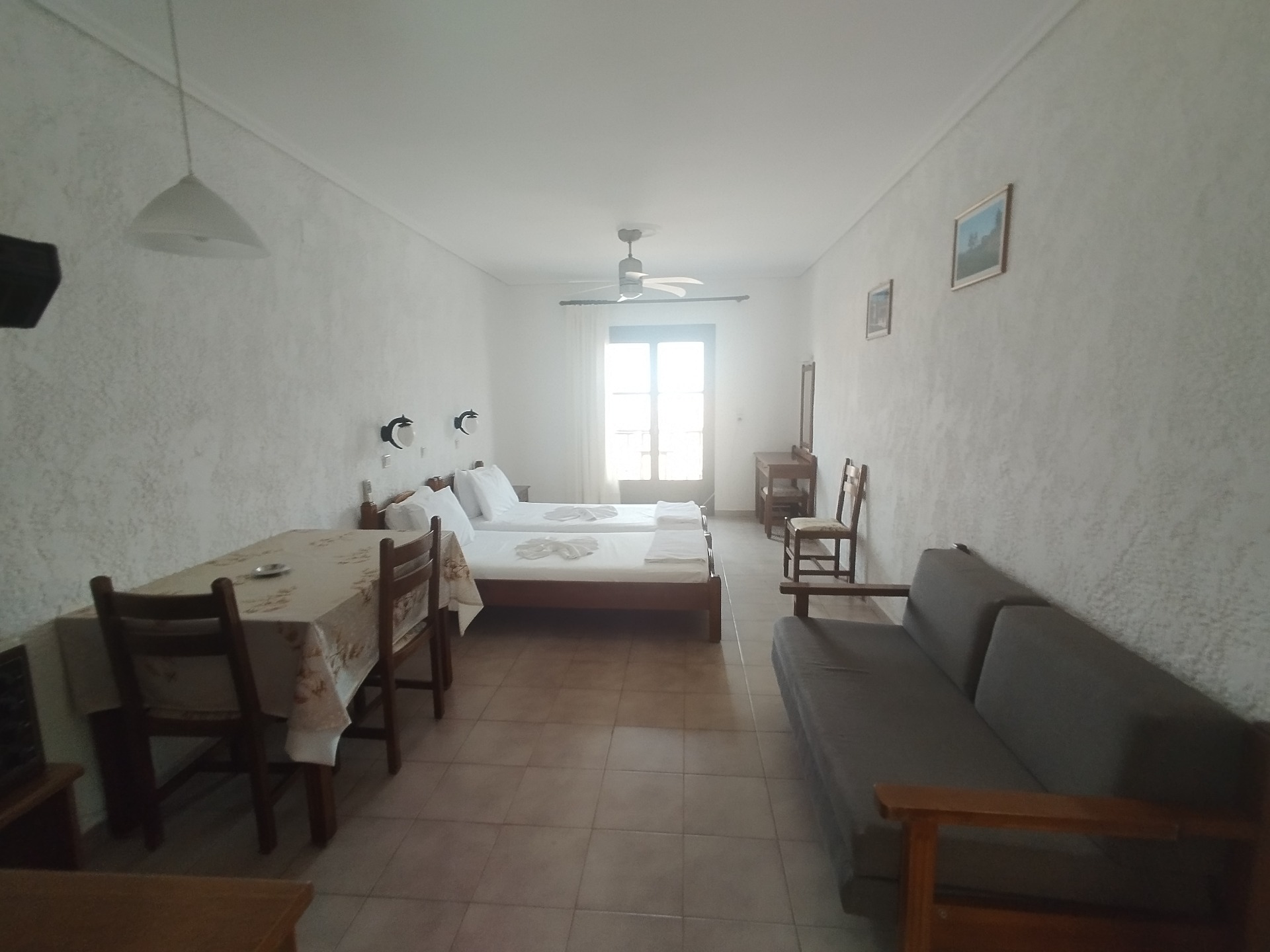 Ξενοδοχείο 13 επιπλωμένων διαμερισμάτων Γ' κατηγορίας διατίθεται προς πώληση στον Άγιο Κωνσταντίνο στην Σάμο σε απόσταση 100 μ από την θάλασσα. Το ξενοδοχείο με συνολικό εμβαδόν 947,10μ2 έχει χτιστεί σε οικόπεδο με έκταση 818,87 μ2. Αποτελείται από υπόγειο όπου έχει διαμορφωθεί ένα τριάρι διαμέρισμα και επιπλέον αποθηκευτικός χώρος και χώρος πλυντηρίων. Στο ισόγειο υπάρχει ο χώρος υποδοχής(reception), ένα δυάρι και 4 μεζονέτες. Στον όροφο υπάρχει επίσης ένα δυάρι και 5 μονόχωρα διαμερίσματα. Οι μεζονέτες αποτελούνται από γωνία κουζίνας, μπάνιο και σαλόνι στο ένα επίπεδο και με εσωτερική σκάλα οδηγείται ο επισκέπτης σε χωλ και δυο υπνοδωμάτια με μπαλκόνι σε κάθε ένα από αυτά. Η θέα στη θάλασσα είναι πανοραμική από το μπαλκόνι του υπνοδωματίου. Το δυάρι διαθέτει ξεχωριστό υπνοδωμάτιο, άνετο σαλόνι, κουζίνα και μπάνιο. Όλα τα δωμάτια διαθέτουν μπαλκόνι με θέα στη θάλασσα και στον αύλειο χώρο του ξενοδοχείου. Υπάρχει δυνατότητα κατασκευής πισίνας. Το ξενοδοχείο διαθέτει χώρο στάθμευσης. Έχει εγκατάσταση κεντρικής θέρμανσης (καλοριφέρ) και air- condition. Το ξενοδοχείο λειτουργεί από το 1990 μέχρι και σήμερα.