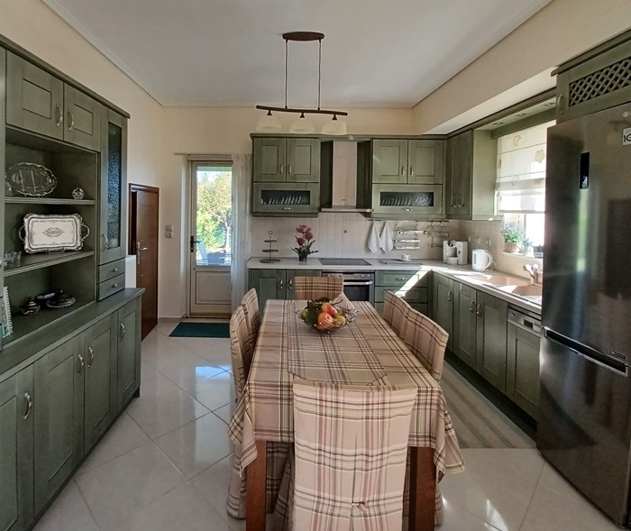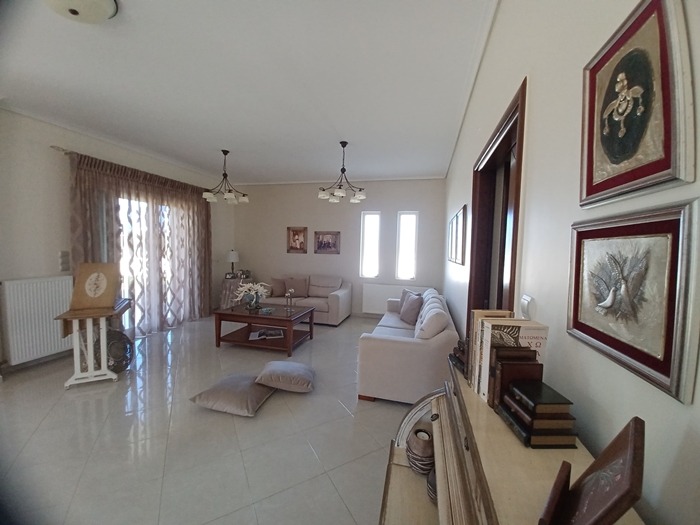 -Το ισόγειο αποτελείται από μεγάλο ενιαίο χώρο καθιστικού με τζάκι, κουζίνας και σαλονιού, ένα υπνοδωμάτιο και μία τουαλέτα και ο όροφος από δύο υπνοδωμάτια, βιβλιοθήκη- υπνοδωμάτιο και τουαλέτα. Υπάρχει εσωτερική μαρμάρινη σκάλα, μία εσωτερική αποθήκη σε κάθε όροφο, κεντρική θέρμανση πετρελαίου με αυτονομία κατά όροφο και πολύ καλά αλουμίνια,ανοιγόμενα-ανακλινόμενα με διπλά τζάμια.