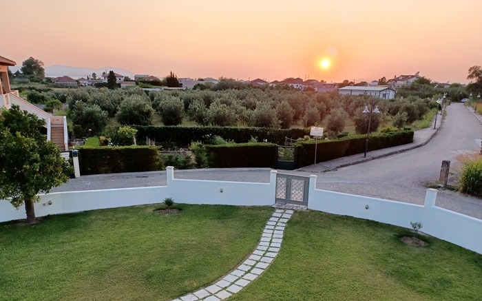 -Ο χώρος που περιβάλλει την κατοικία από όλες τις πλευρές είναι όμορφα διαμορφωμένος με πράσινο, δένδρα, πλακόστρωτο και τρεις θέσεις υπαίθριας στάθμευσης, αποθήκη 12τ.μ, άλλη πρόχειρη αποθήκη, χώρο λαχανόκηπου, λειτουργικό πηγάδι με αντλία-δίκτυο, μεγάλο και επιμελημένο τσιμεντένιο περίβολο και εντυπωσιακές αυλόπορτες.
