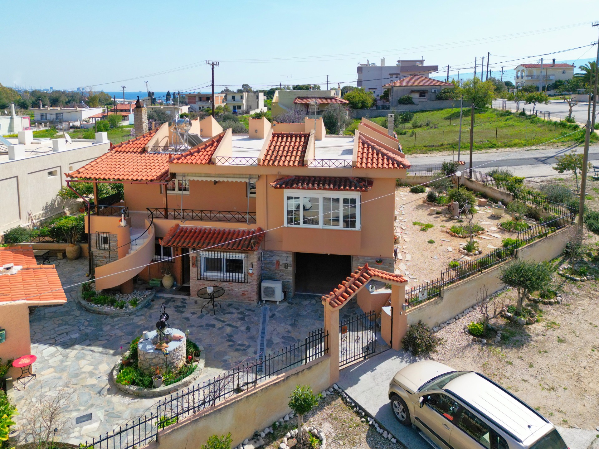 Στο εξωτερικό μέρος, ο περιποιημένος κήπος με τα δέντρα και το BBQ δημιουργούν έναν προσωπικό παράδεισο χαλάρωσης, ενώ το κλειστό γκαράζ δύο θέσεων (συν μία επιπλέον ανοιχτή) προσφέρει πολύτιμο αποθηκευτικό και χρηστικό χώρο. Το ακίνητο παραδίδεται με τις ηλεκτρικές συσκευές και μεγάλο μέρος της επίπλωσής του, έτοιμο να κατοικηθεί άμεσα. Με εξοπλισμό που περιλαμβάνει αυτόνομη θέρμανση ανά επίπεδο, κλιματισμό, ηλιακό θερμοσίφωνα, συνθετικά κουφώματα με διπλά τζάμια για άριστη θερμομόνωση και σύστημα συναγερμού. Η μονοκατοικία αυτή αποτελεί μια εξαιρετική επιλογή είτε για μόνιμη είτε για εξοχική κατοικία σε μια περιοχή με εύκολη πρόσβαση στην Αθήνα και σε δημοφιλείς παραθαλάσσιους προορισμούς της Κορινθίας.