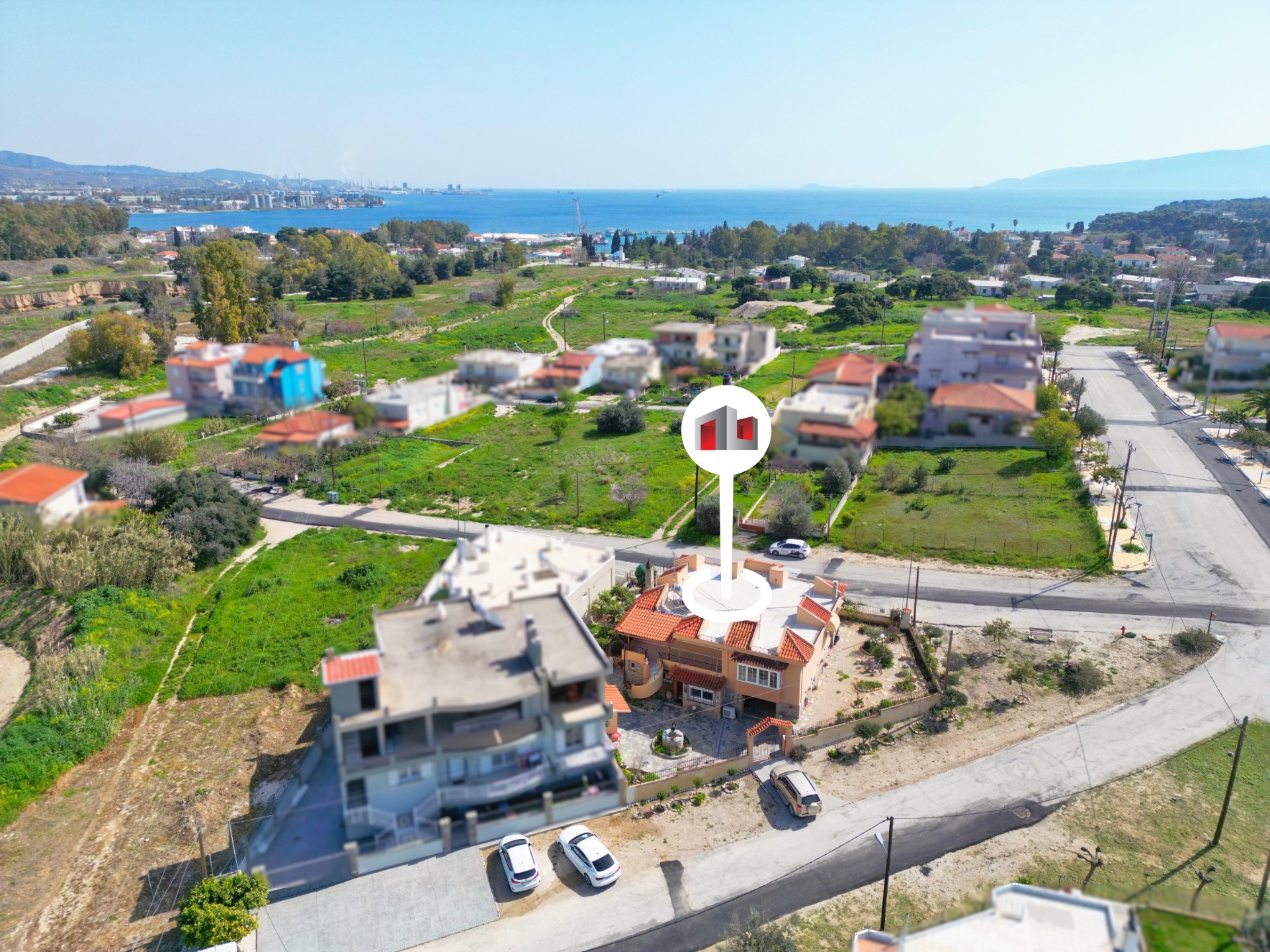 Η τοποθεσία αποτελεί σημαντικό πλεονέκτημα του ακινήτου, καθώς βρίσκεται σε μια ήσυχη γειτονιά με μόνιμους κατοίκους, κοντά σε παραλία και σε βασικές υπηρεσίες, καταστήματα και εύκολη πρόσβαση προς την Διώρυγα της Κορίνθου, το Λουτράκι και την Κόρινθο, προσφέροντας ιδανικές συνθήκες τόσο για μόνιμη κατοικία όσο και για εξοχική χρήση.